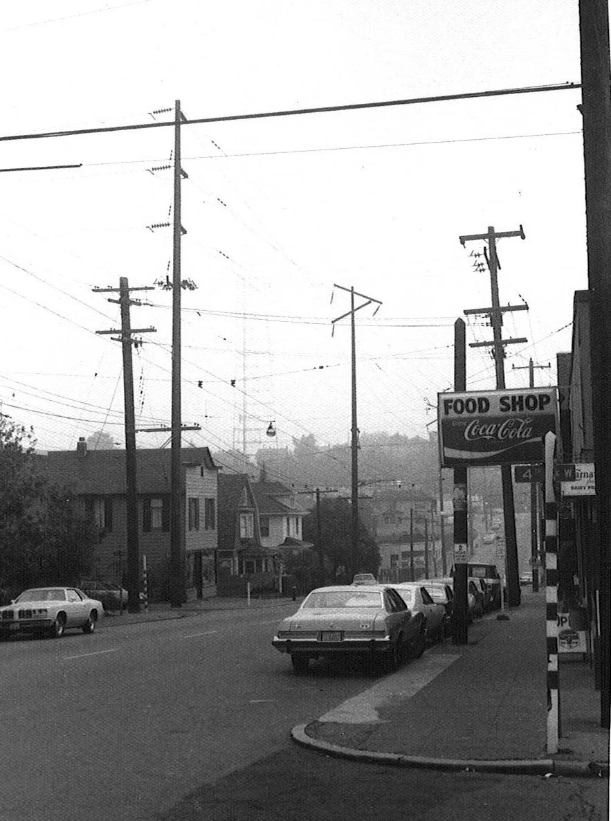 Looking east on W. Galer from 4th Ave. W. Photo by Nolan Olson, ca. 1975. Nolan Olson Collection QAHS