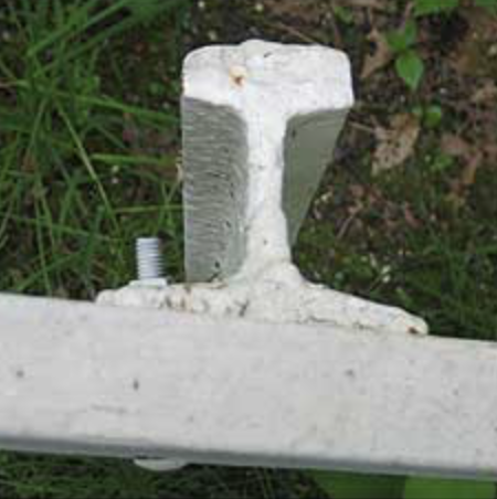 On close inspection, you can see that care was taken in cutting the rails: the cut is always sloped away from the handrail (this one is 310). Photo by Thomas Horton. 2007.